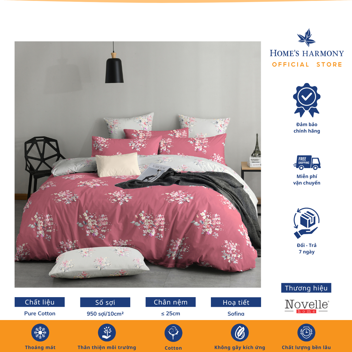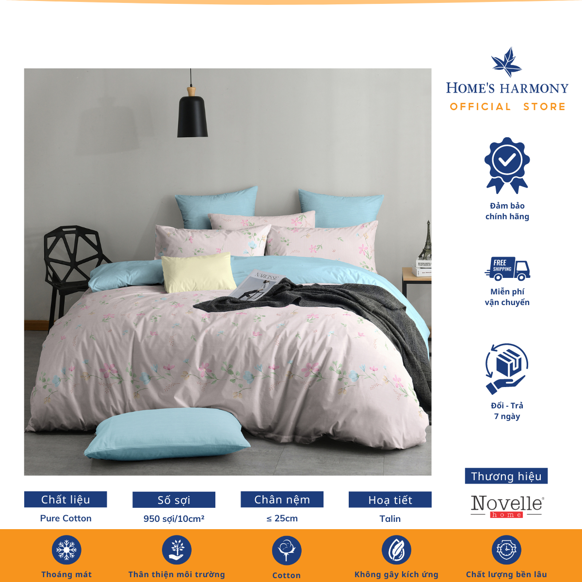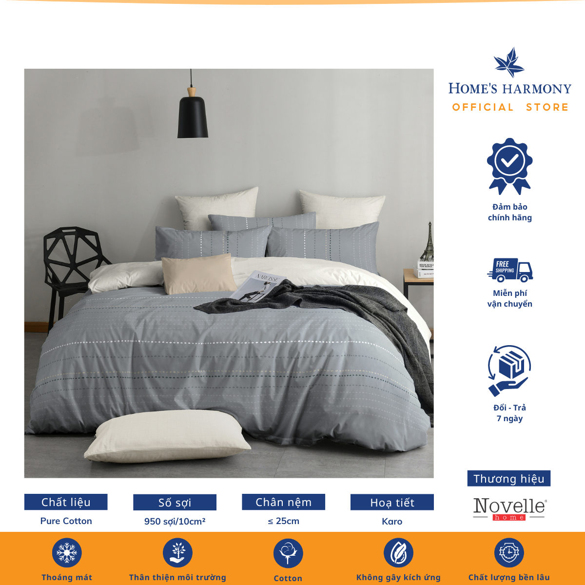 Bộ drap, áo gối kèm mền chần Cotton tổng hợp Novelle Home Pure Cotton