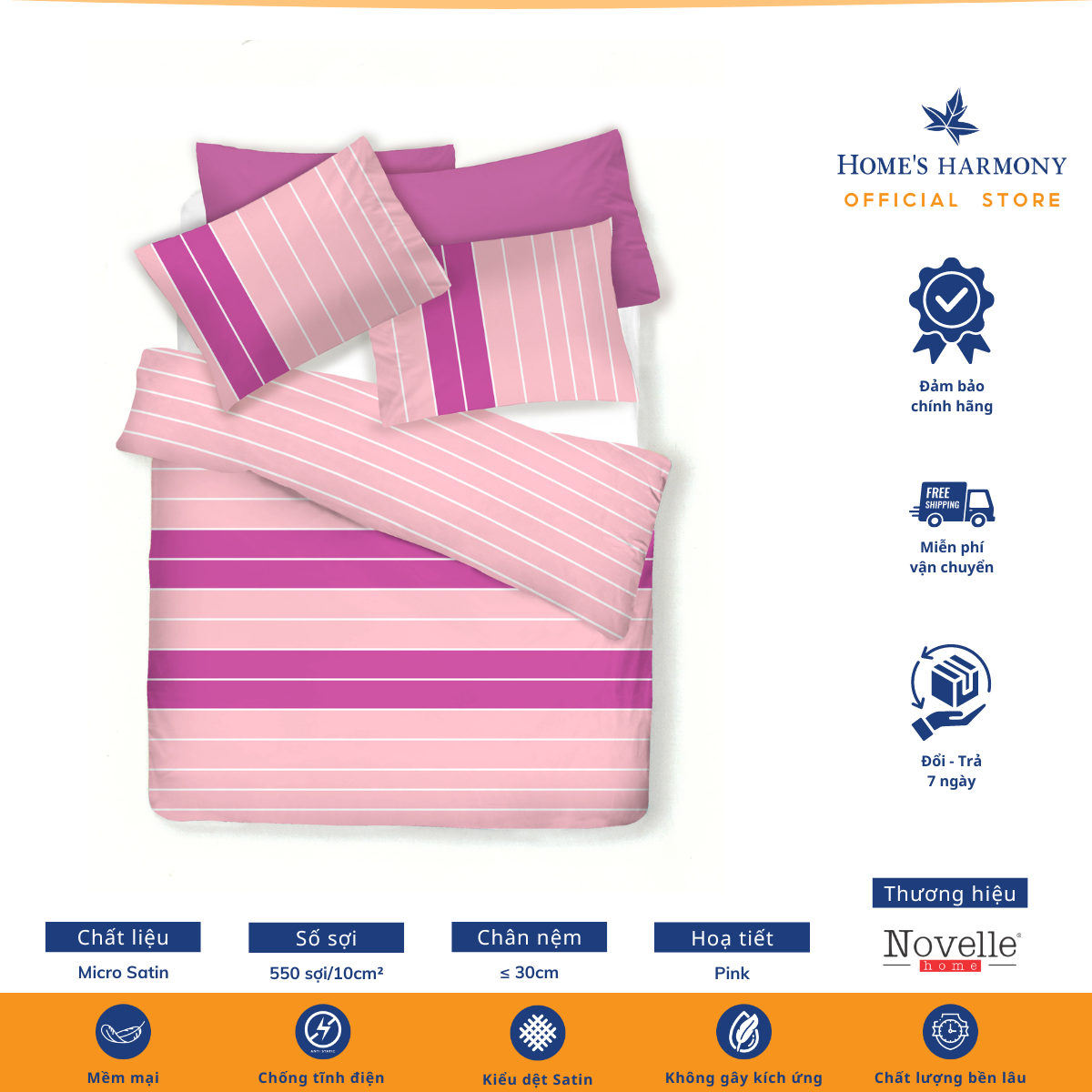 Bộ drap, áo gối kèm mền chần Micro Satin Novelle Home Urban Westin Stripe