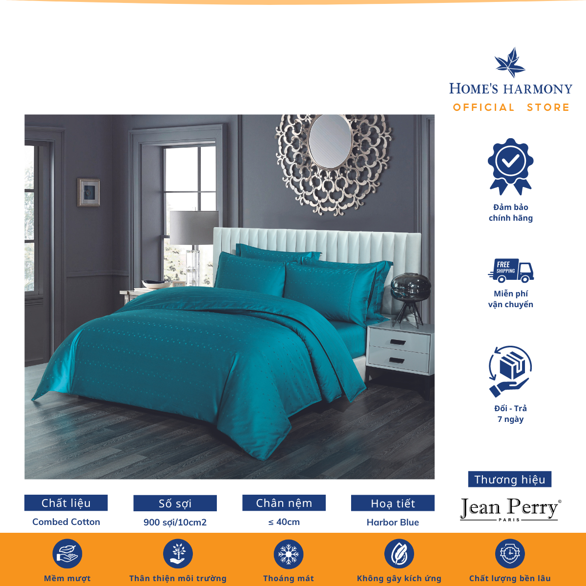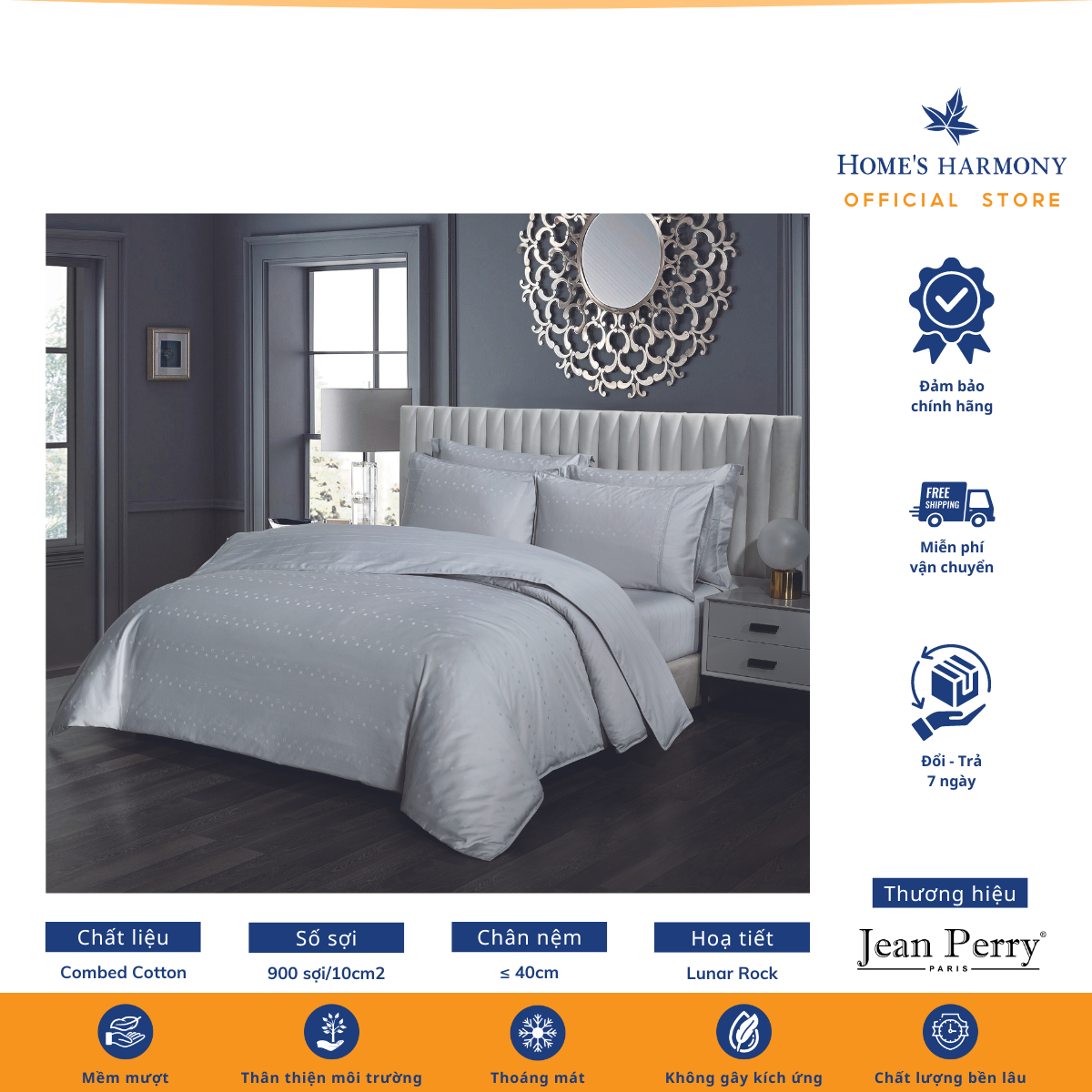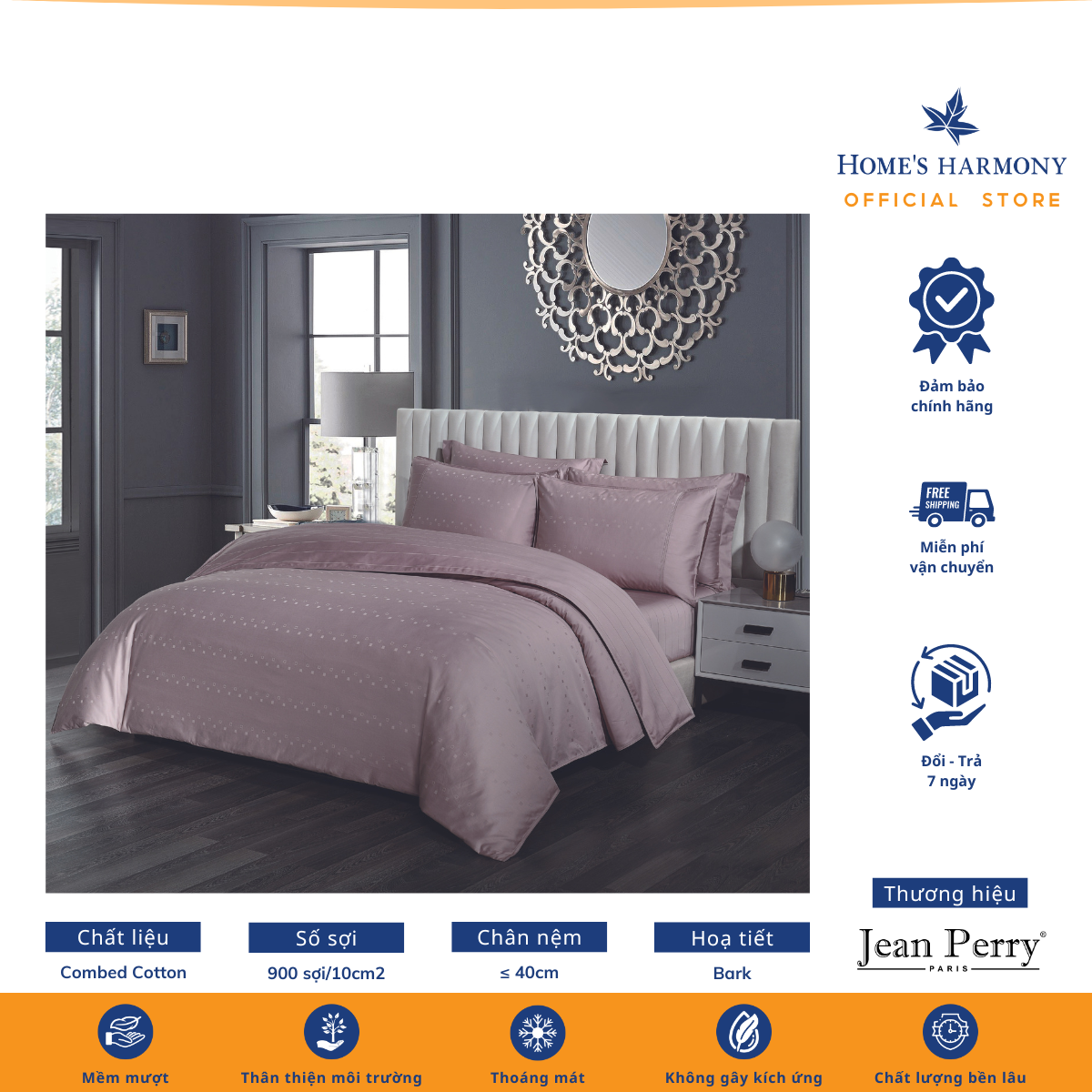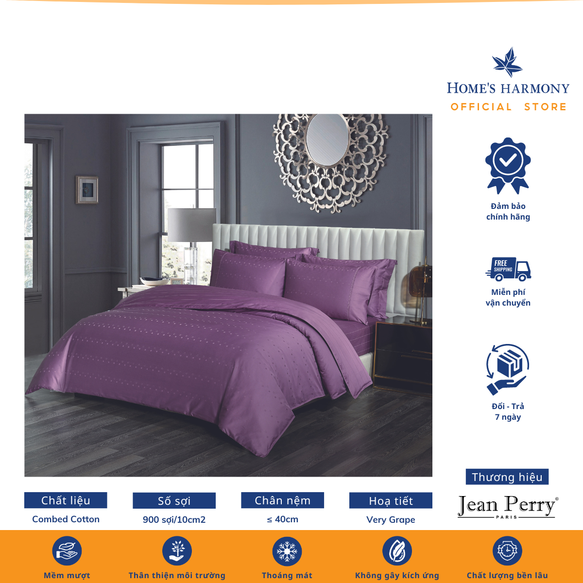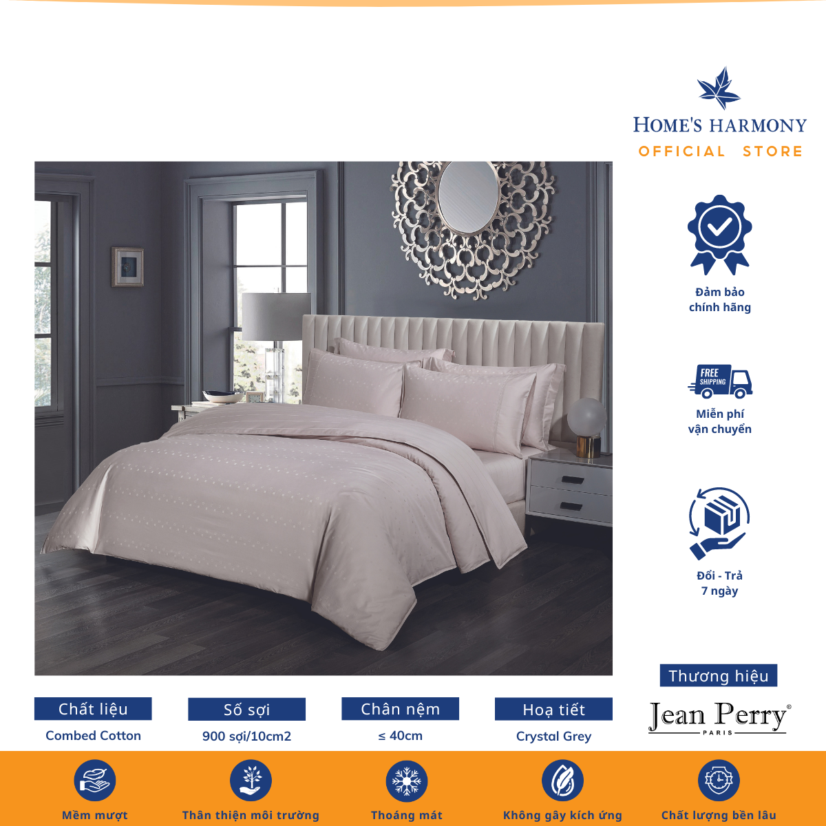 Bộ drap, áo gối kèm vỏ mền Cotton Jean Perry Coray
