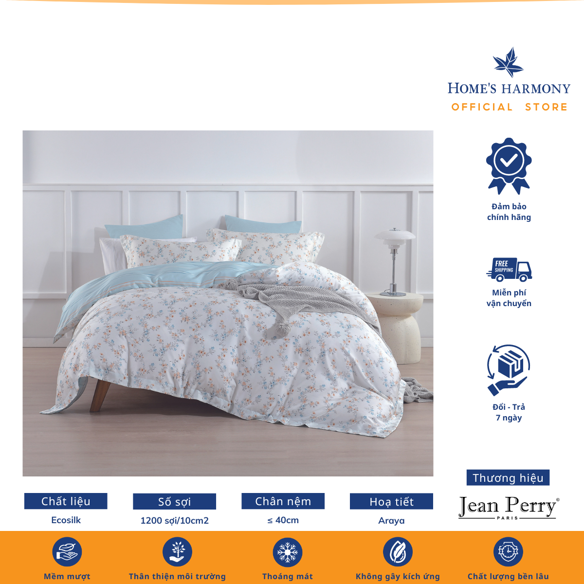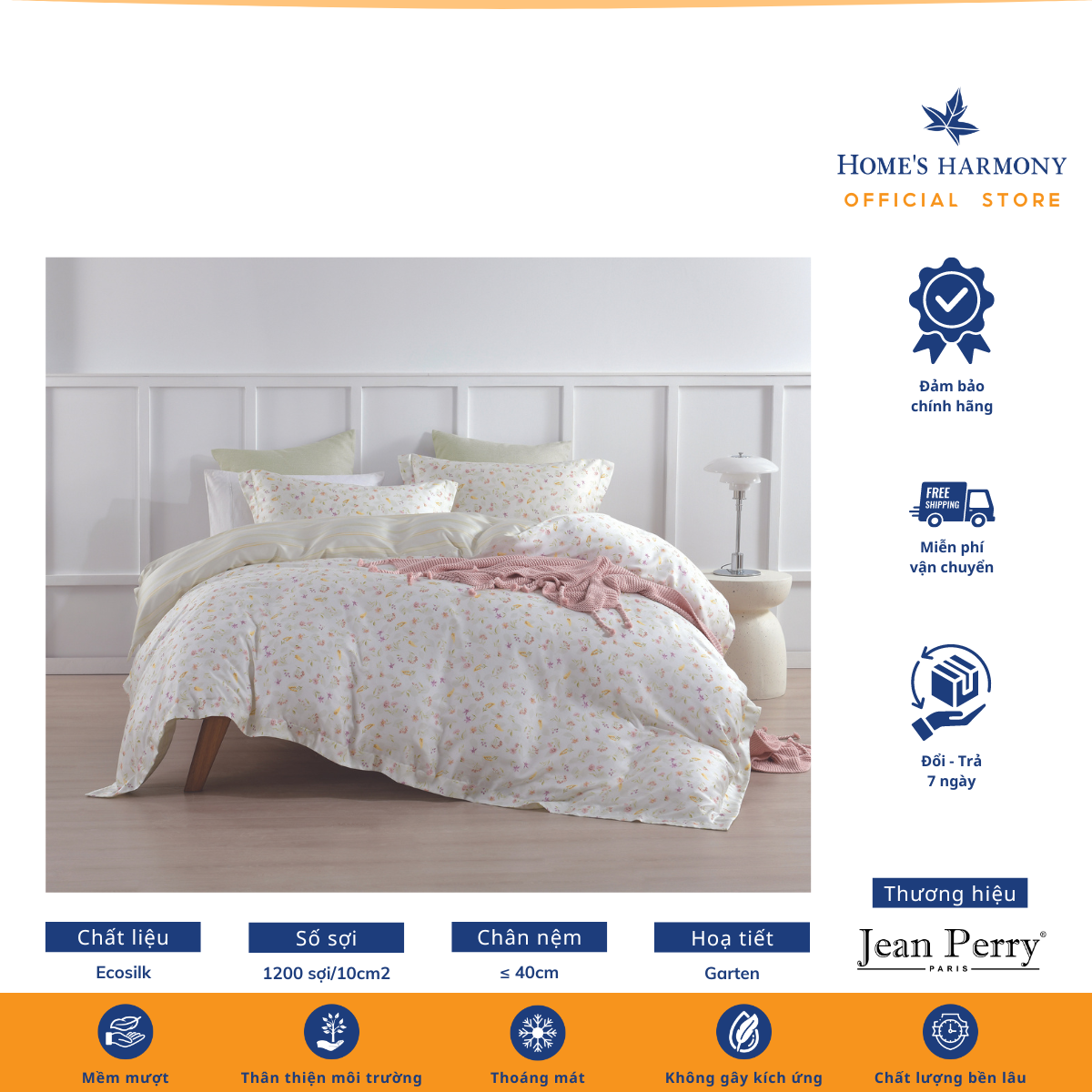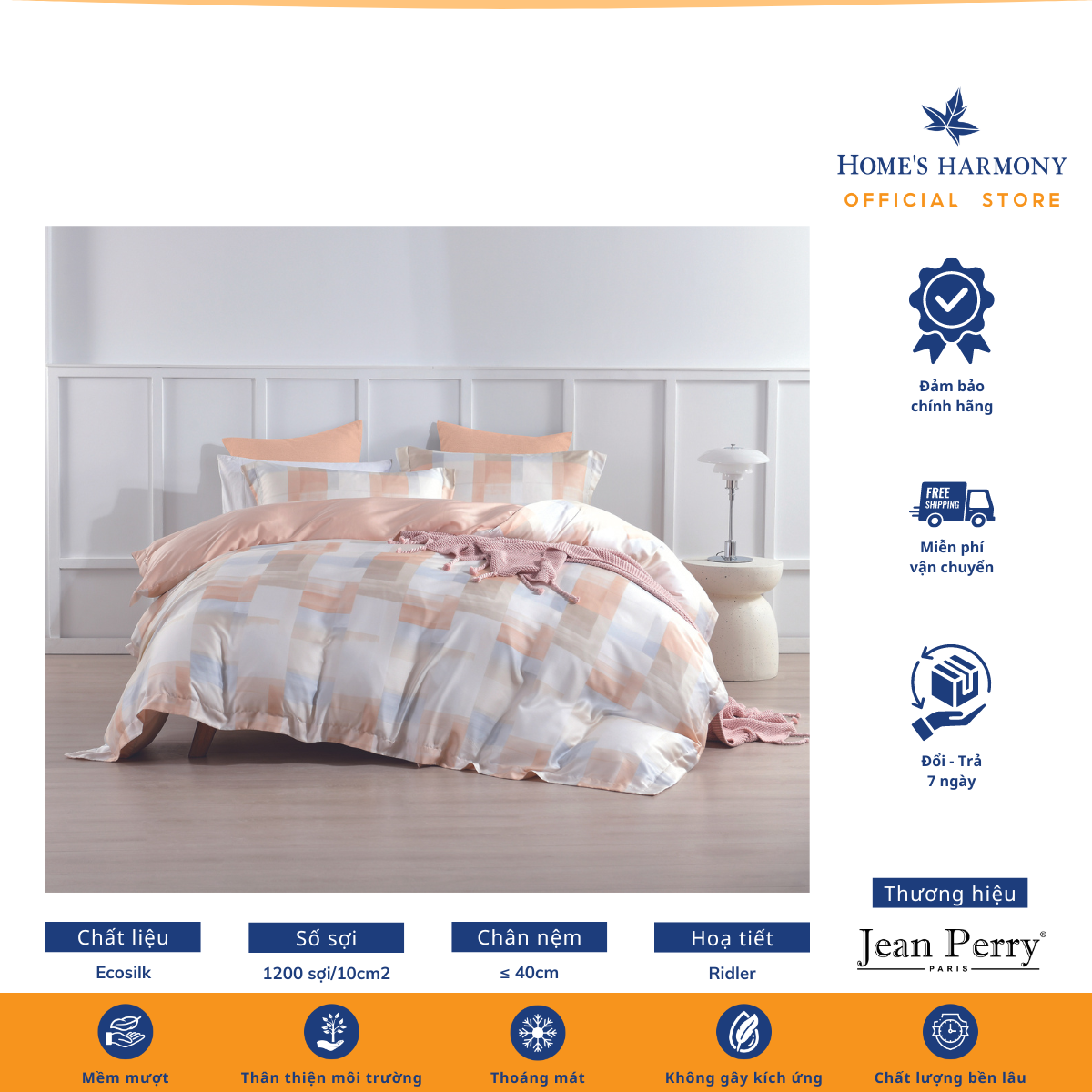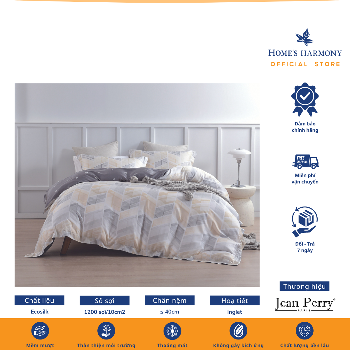 Bộ drap, áo gối kèm vỏ mền Ecosilk Jean Perry Garni
