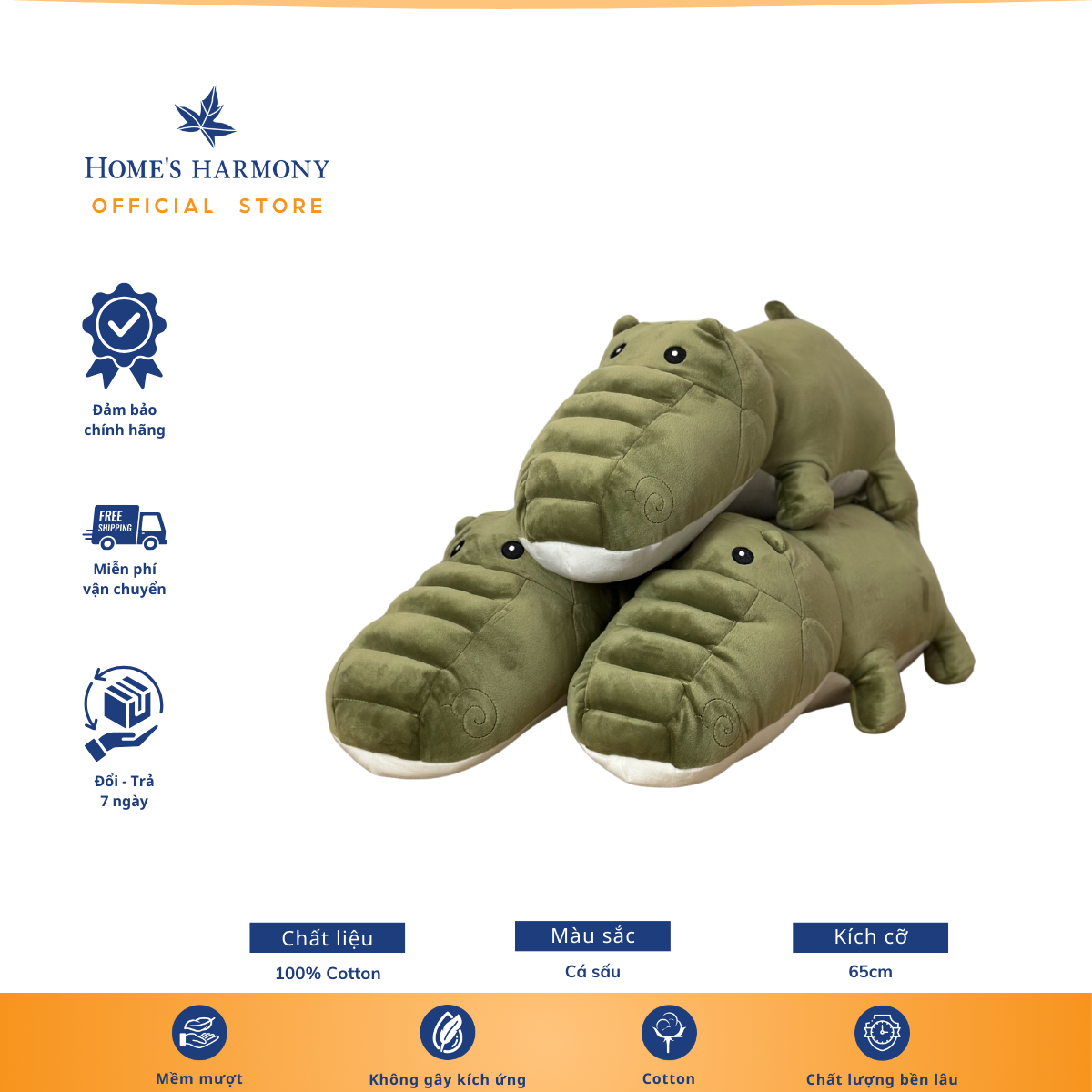 Gấu Bông Cotton Soft Cá Sấu, Kích Thước 65cm